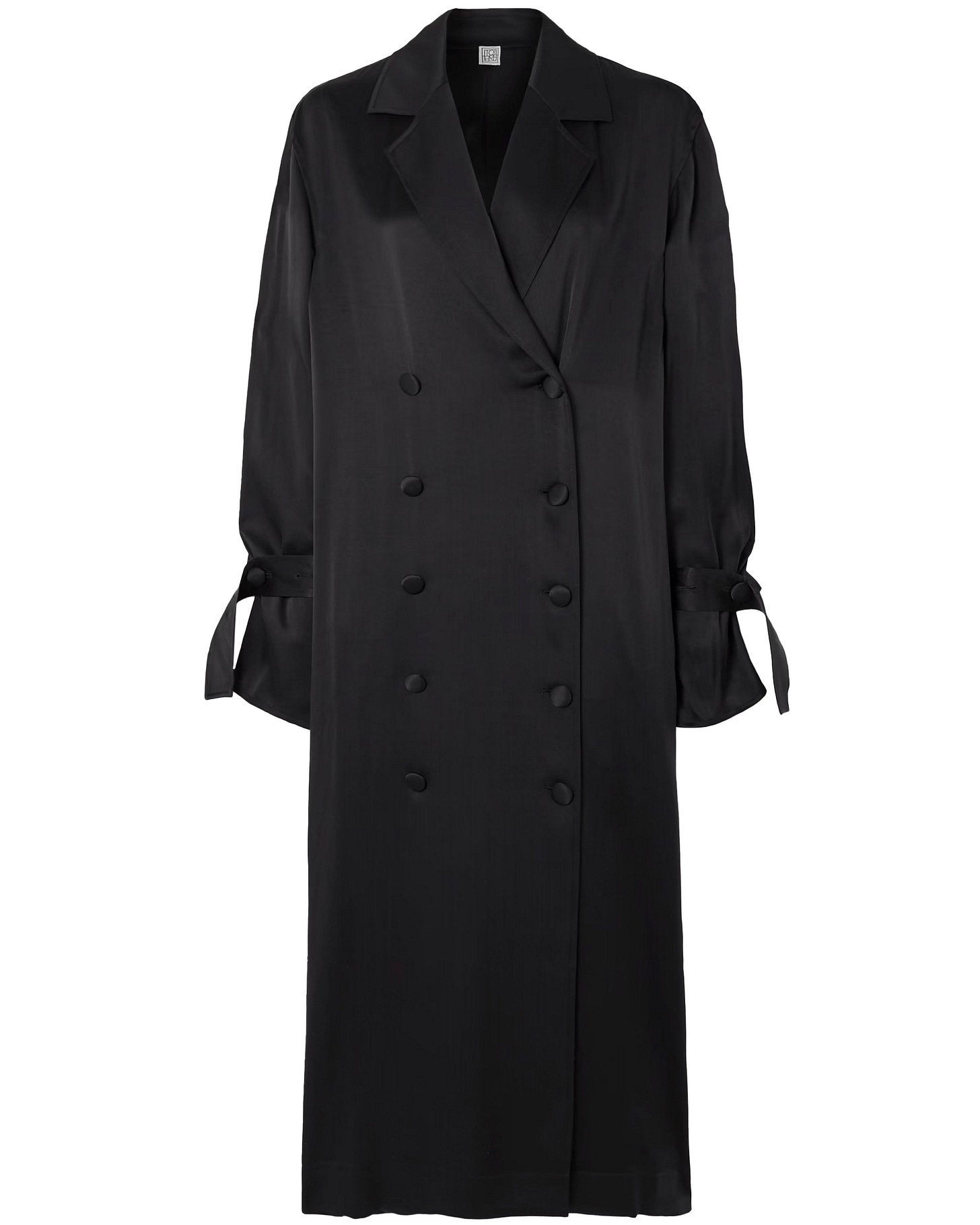 Toteme Satin Trench: The perfect evening piece for me. I wear it for a night out with slip dresses.